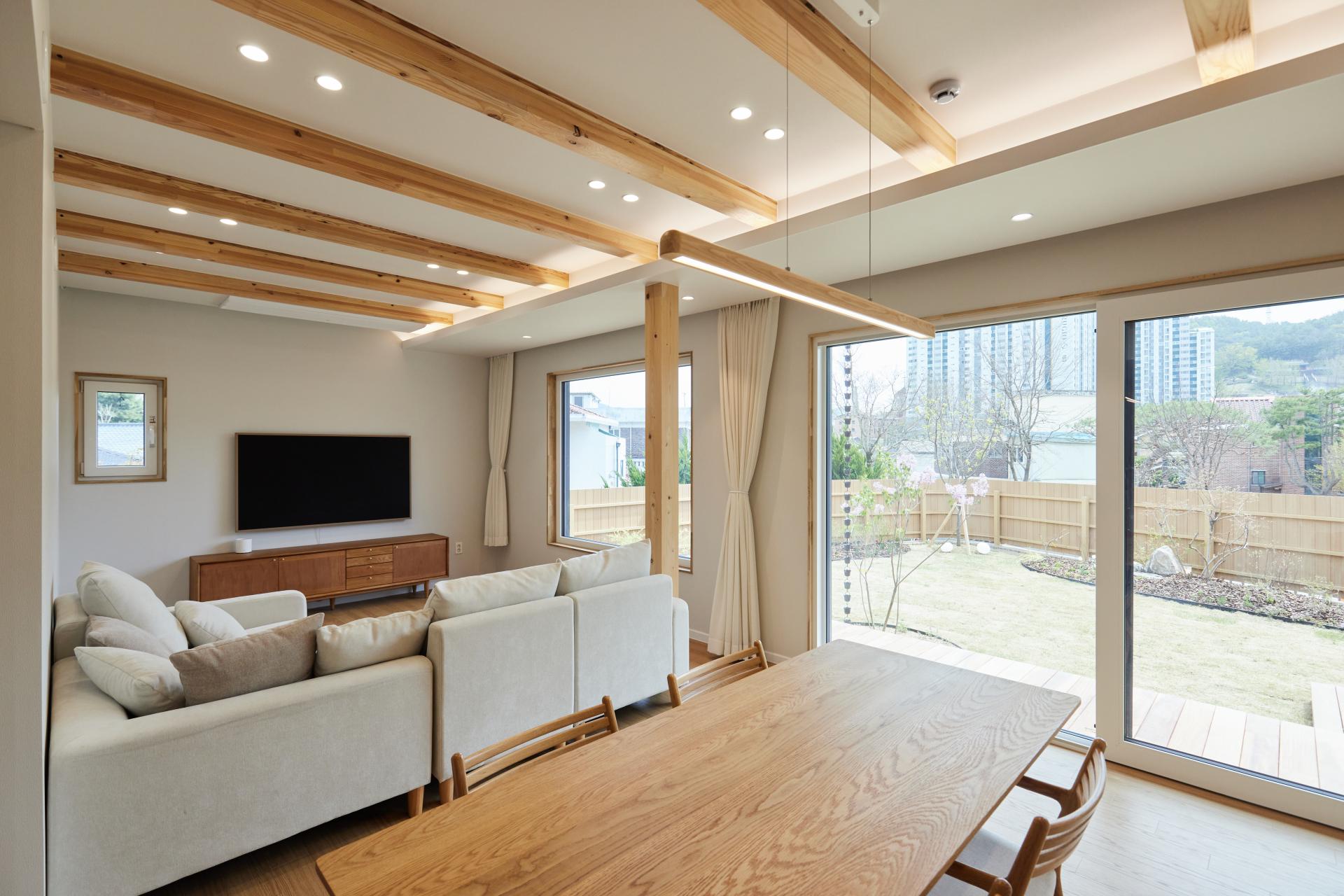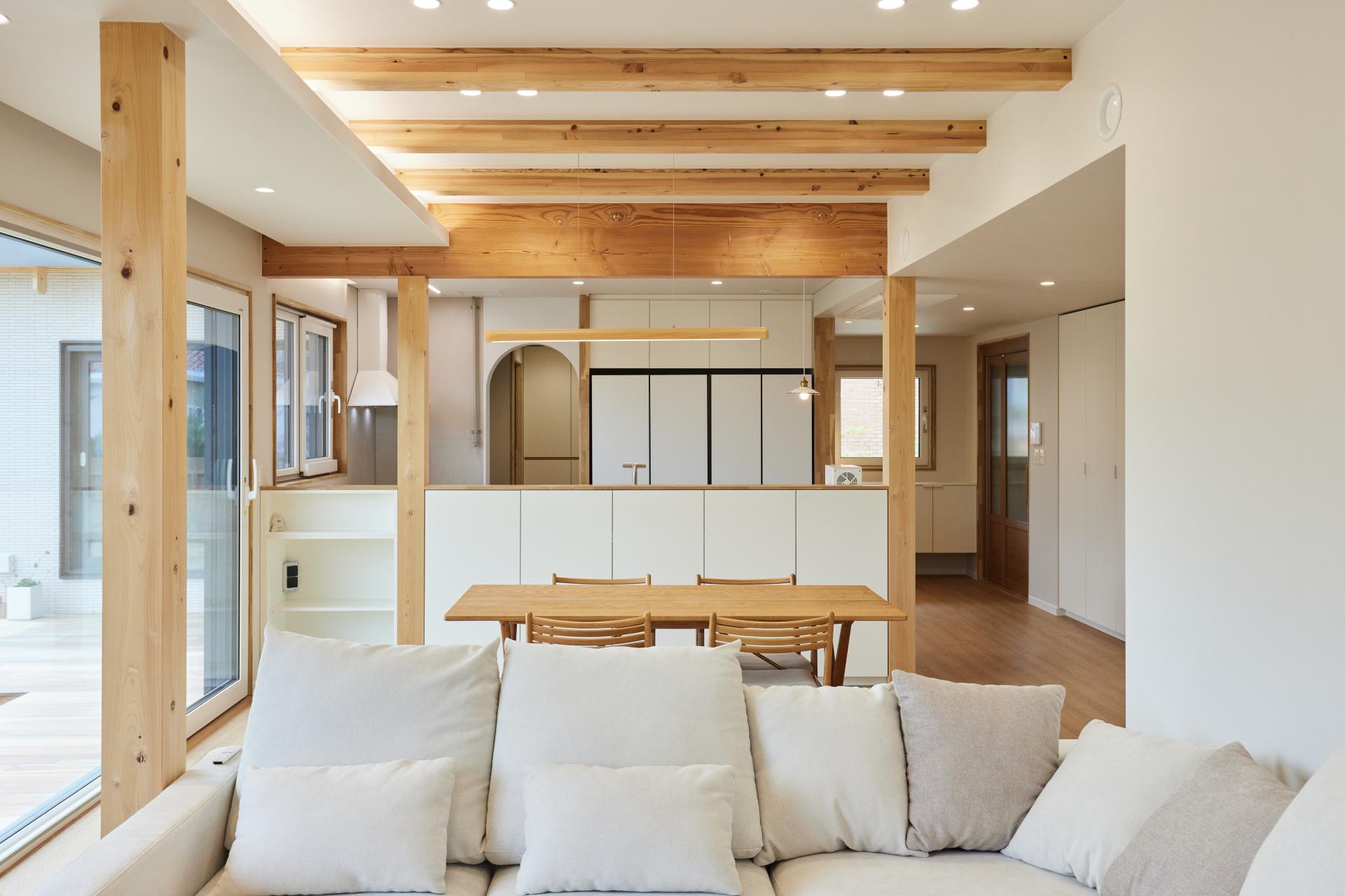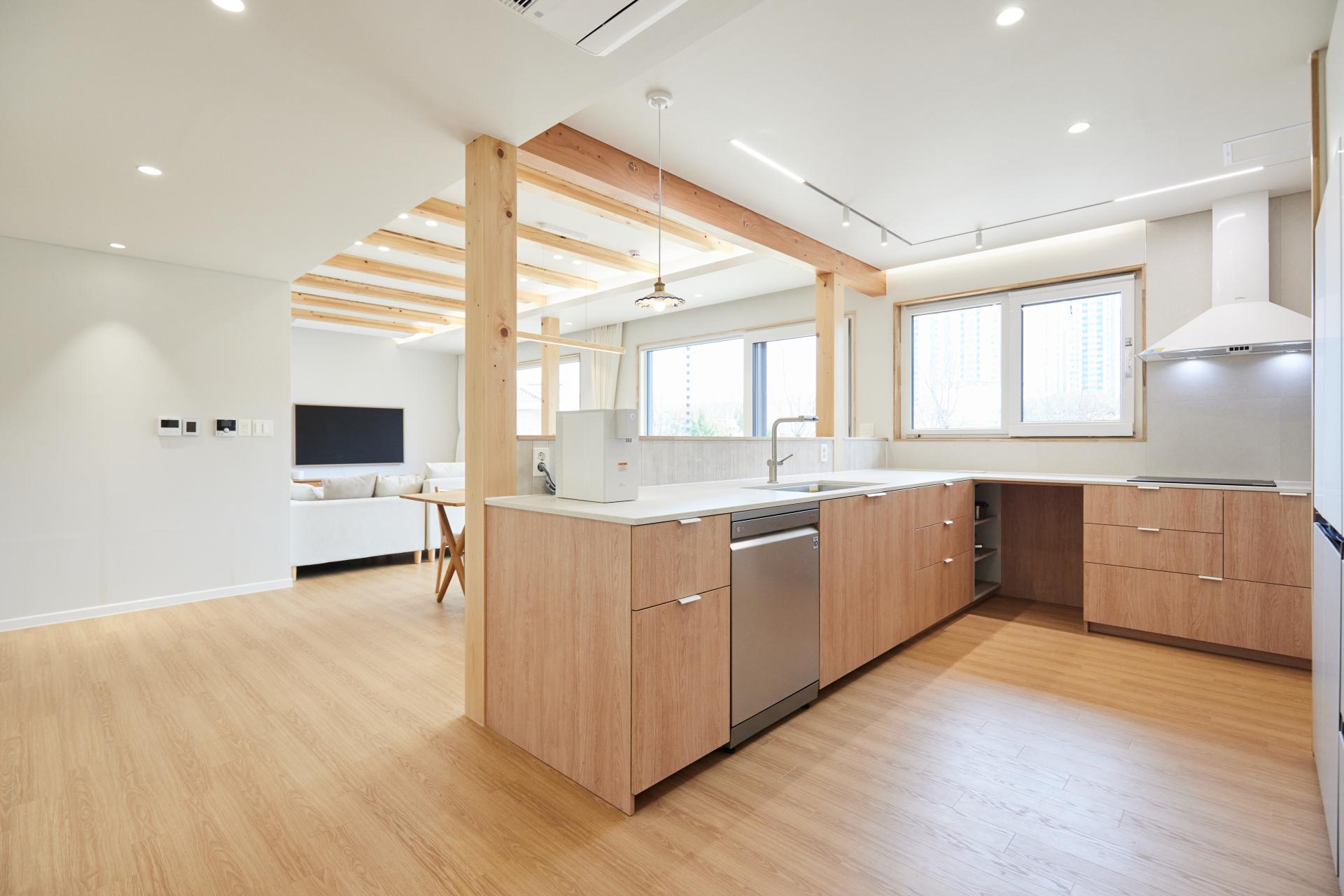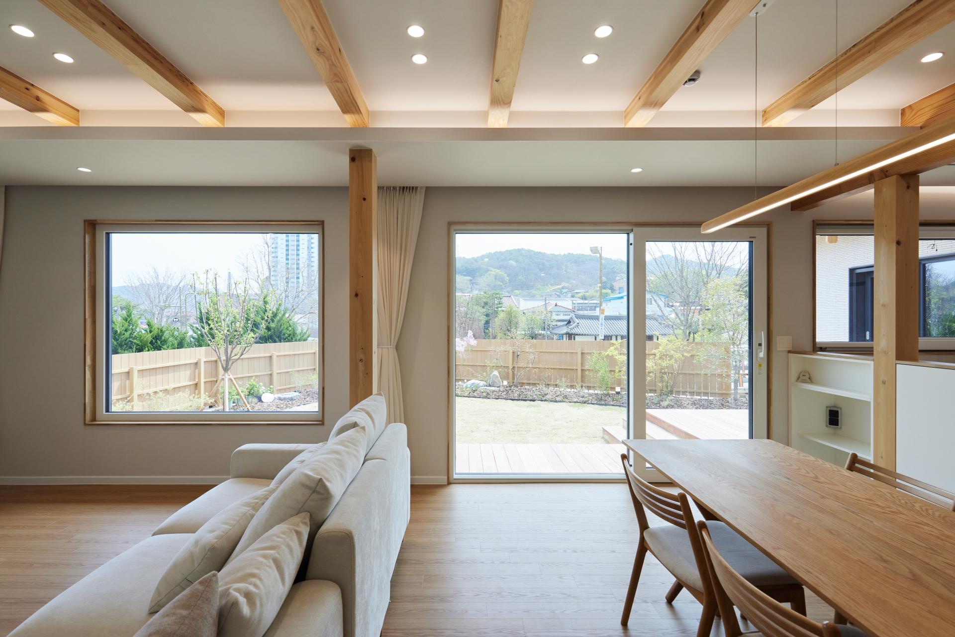#중목구조 #중목구조설계 #인테리어설계 #화이트톤 #우드톤 #무몰딩 #심플한 디자인 #우드톤주방 #대면형주방 #노출기둥 #간접조명 #히노끼루버 #휴젠뜨 #친환경벽지 #우드데크 #저에너지주택 #아이콧료와세라믹타일 #아쿠아폼 #시스템에어컨 #중목구조의 목재 노출이 한옥처럼 아름다운 집 #오카메이코리아 #岡本銘木店 #軸組構法 #金物工法 #在来工法