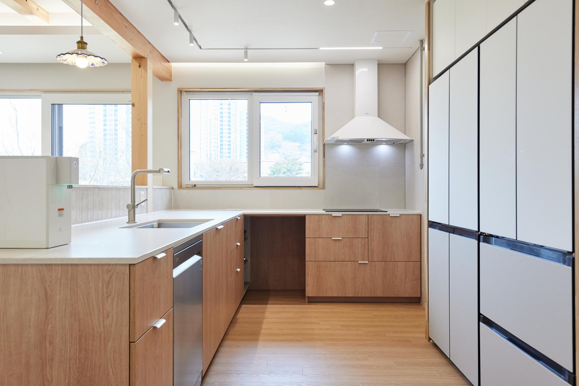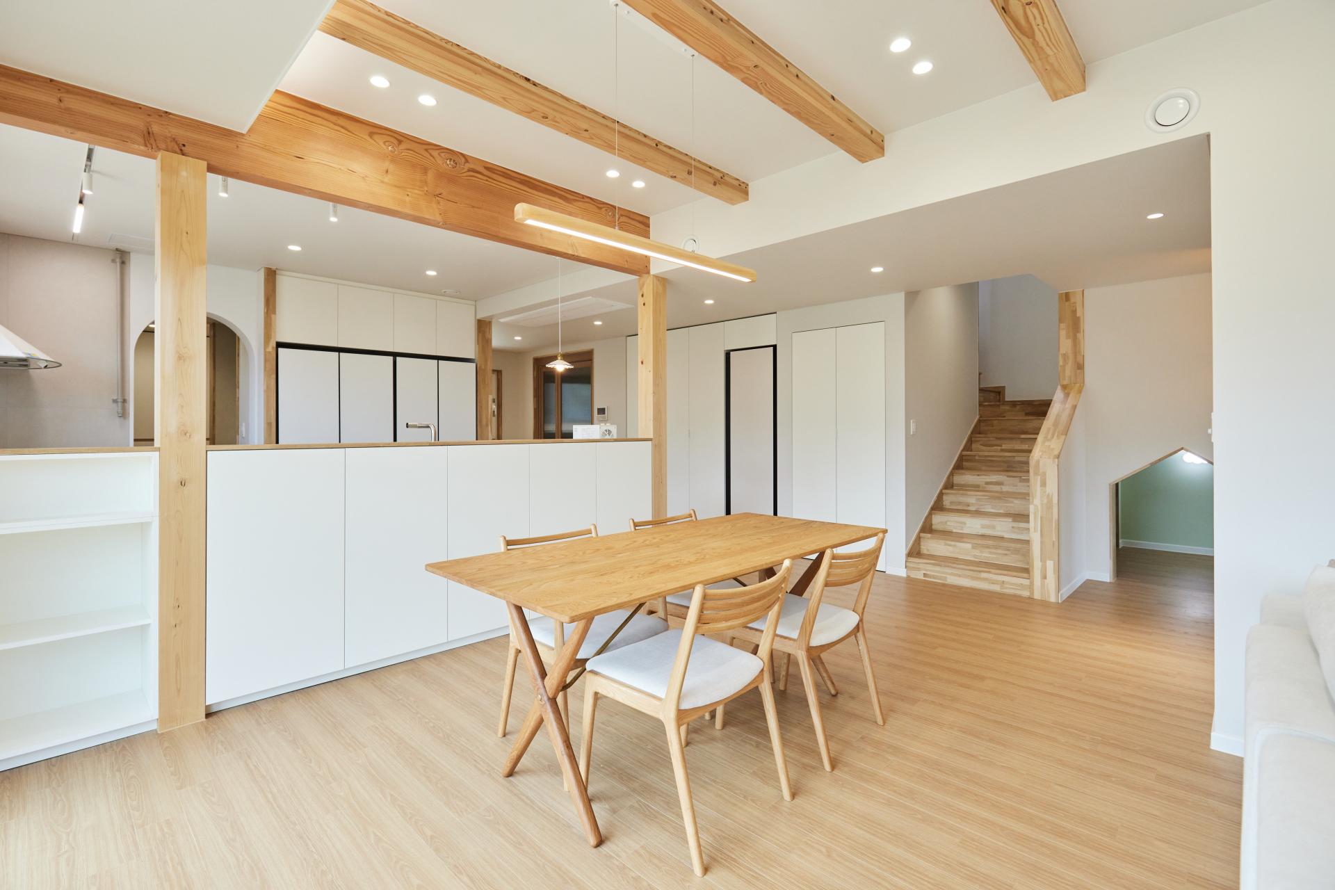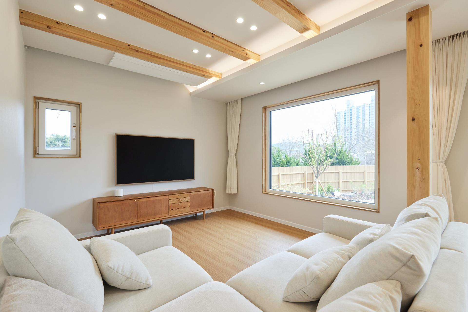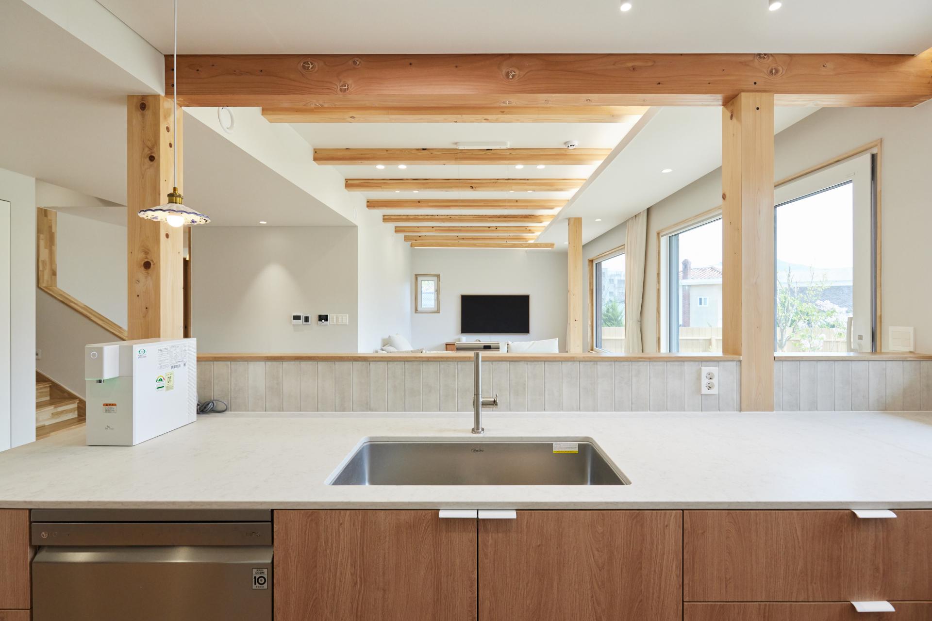 #중목구조 #중목구조설계 #인테리어설계 #화이트톤 #우드톤 #무몰딩 #심플한 디자인 #우드톤주방 #대면형주방 #노출기둥 #간접조명 #히노끼루버 #휴젠뜨 #친환경벽지 #우드데크 #저에너지주택 #아이콧료와세라믹타일 #아쿠아폼 #시스템에어컨 #중목구조의 목재 노출이 한옥처럼 아름다운 집 #오카메이코리아 #岡本銘木店 #軸組構法 #金物工法 #在来工法